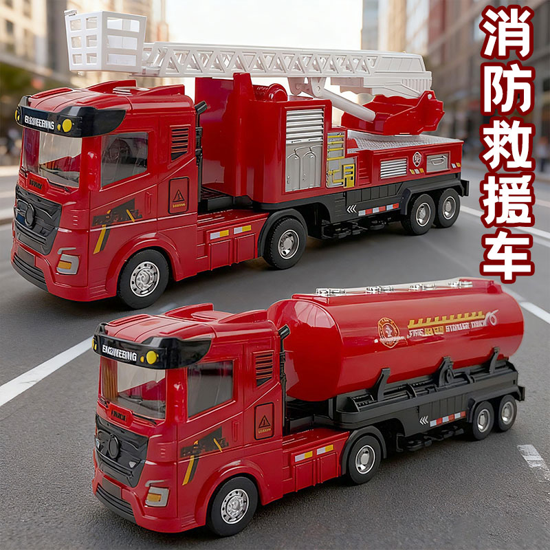 儿童大号消防车玩具仿真云梯升降洒水救援车运输车大卡车汽车模型