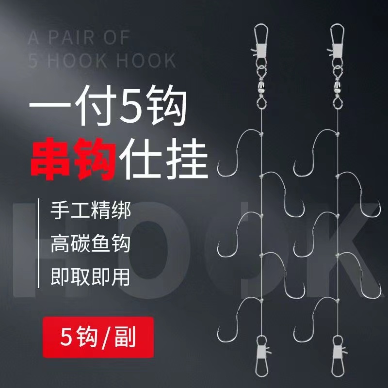 串钩钓组鲫鱼防缠绕五钩串钩线组黄辣丁金袖伊势尼海钓串钩抛筏竿 - 海力胜运动户外旗舰店