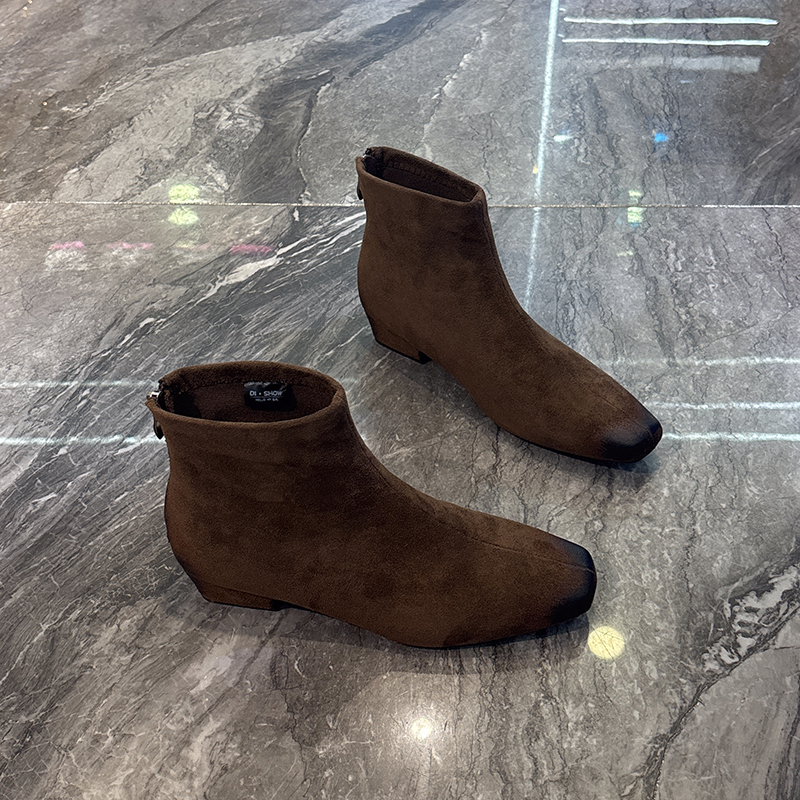 您的位置:他他商城  >   >  气质百搭~绒面坡跟瘦瘦靴女2025秋季新款时尚尖头后拉链短筒裸靴