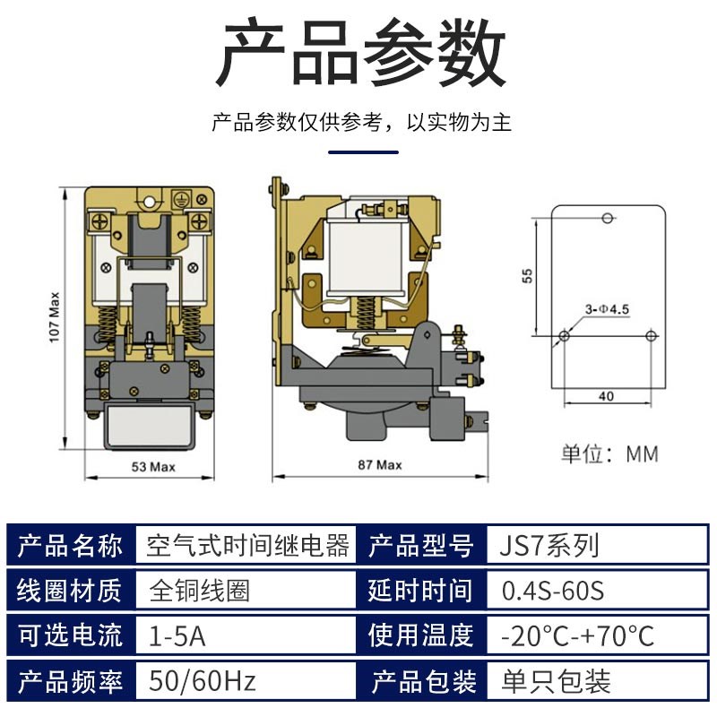 速发JS7机床空气式时间直电器继流电1A 2A A 4A 2A 6A 7A 80V 520 - 永纯优选