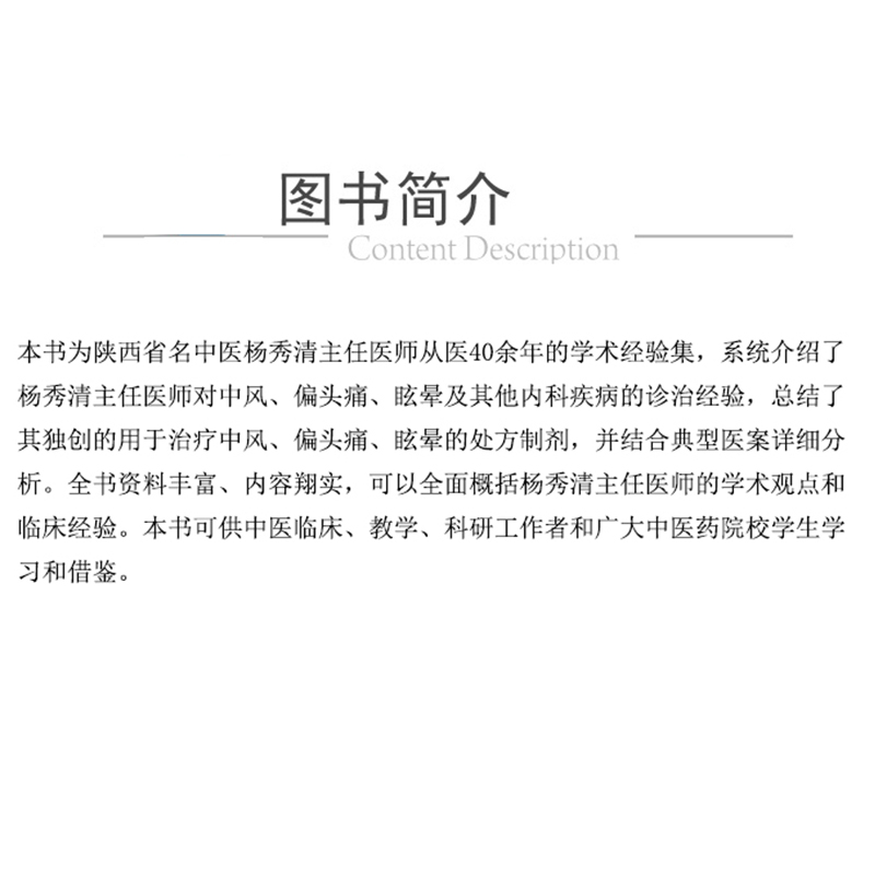 陕西省名中医杨秀清学术经验集 张慧 郭珍 主编 中风偏头痛眩晕 中国医药科技出版社 9787521447217 - 好友图书专营店