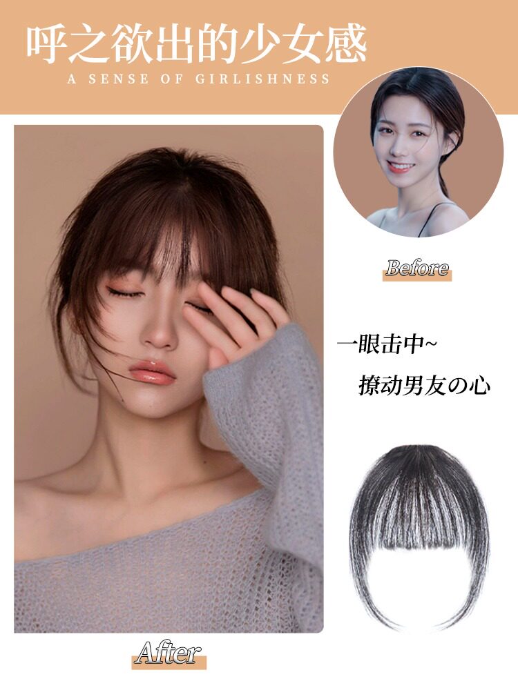 空气刘海假发女片头顶全真发自然前额法式假刘海贴片轻薄款齐刘海 - 黛秀假发官方店