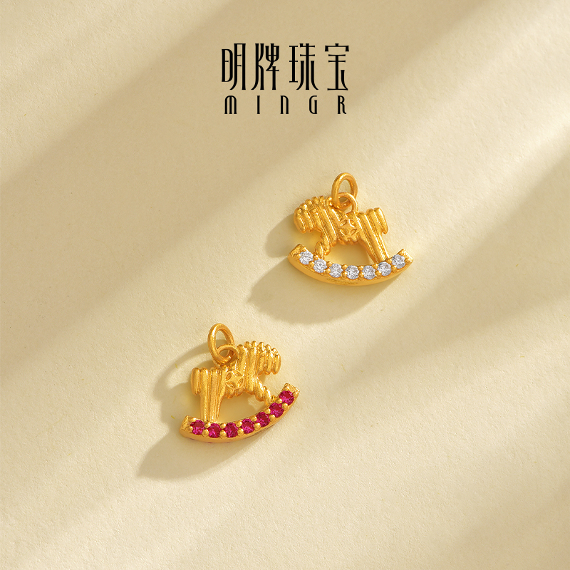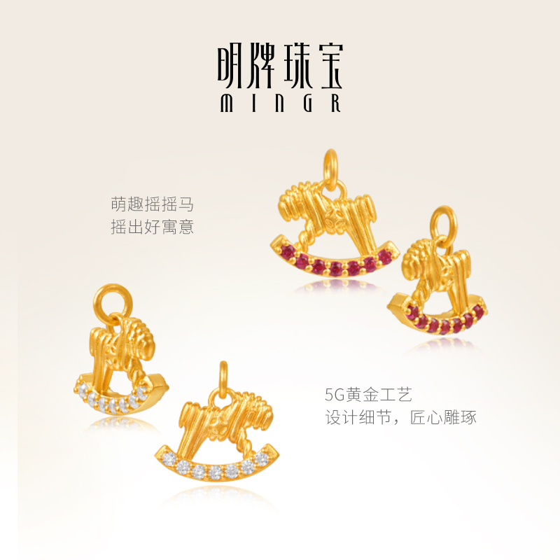 明牌珠宝5G黄金萌动摇摇马吊坠 足金合成红宝石生肖马项坠AFC0900 - 明牌珠宝旗舰店