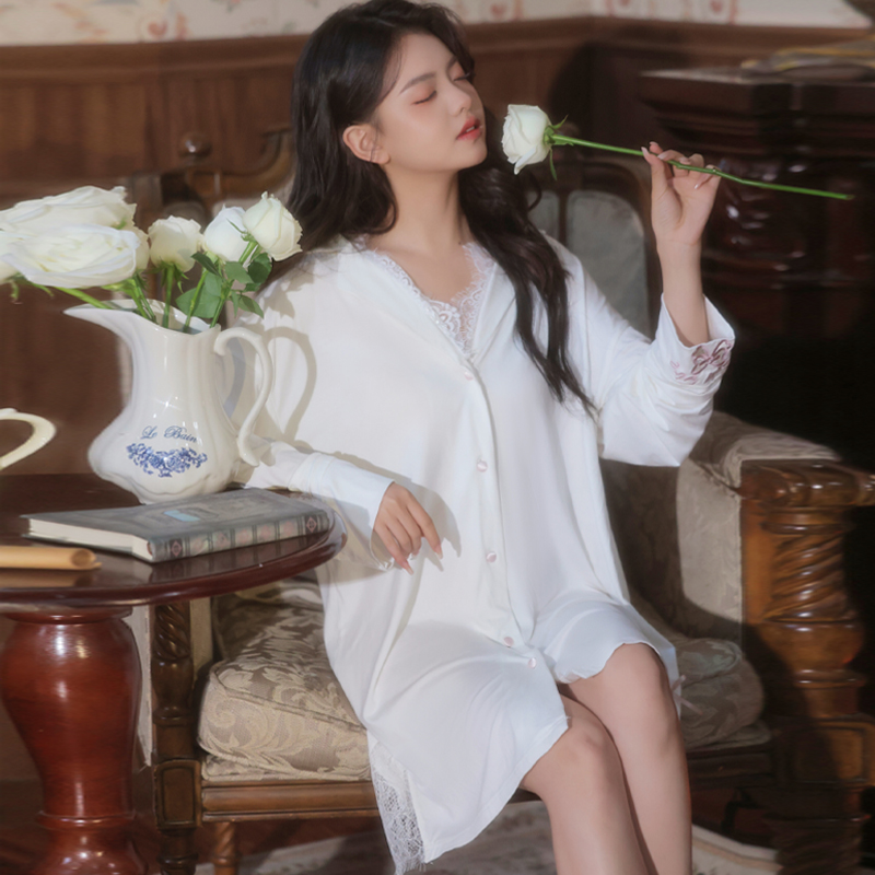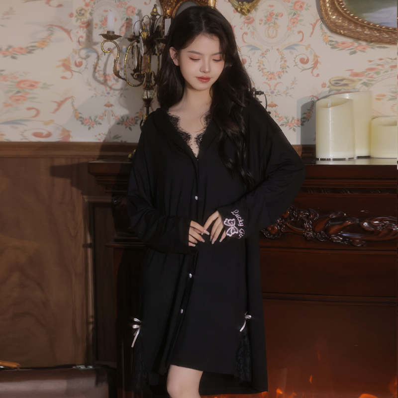 您的位置:他他商城  >   >  2025年新款短款纯欲风短裙长袖睡裙女款黑色莫代尔睡衣女大码性感