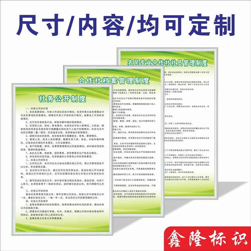 农民专业合作社管理规章制度牌理事会工作制度合作社档案财务管理 - 苔石润商城