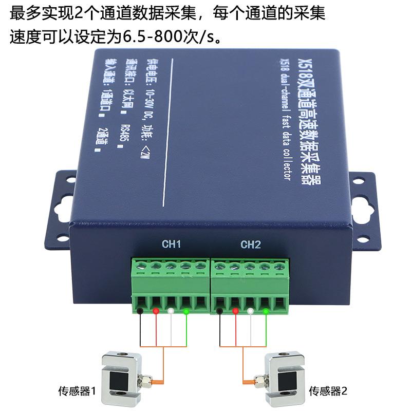 X518双通道高速数据采集器RS485以太网通信称重测力传感器力值 - 坚可发机械