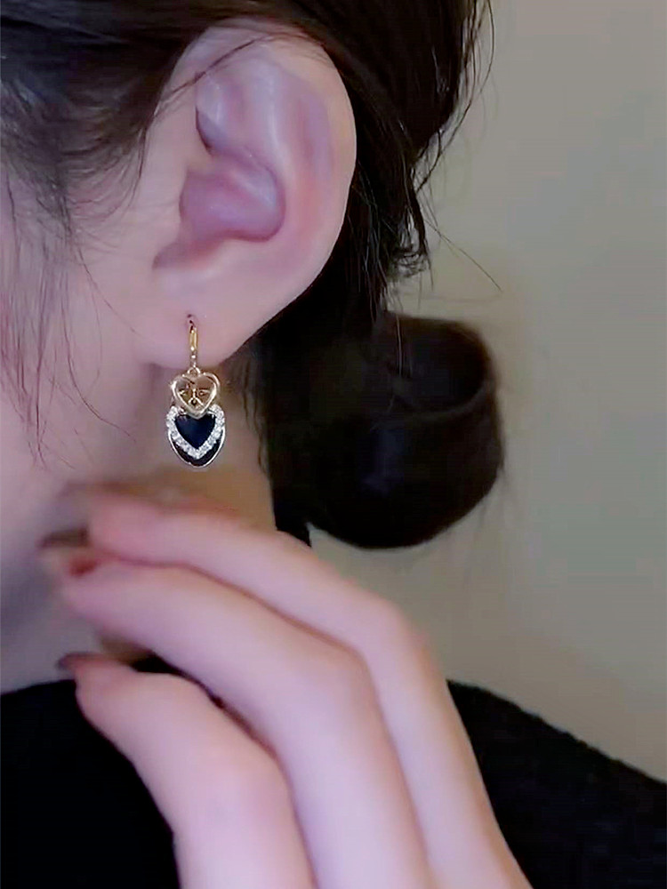 黑色爱心多层吊坠耳环2025新款爆款精致韩国网红气质百搭轻奢耳饰 - 伊凡饰品汇