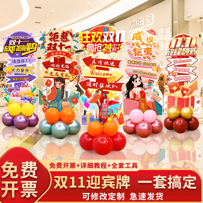 速发1十一气球装饰氛围布置展场双双1直播间活动场景迎宾牌商板