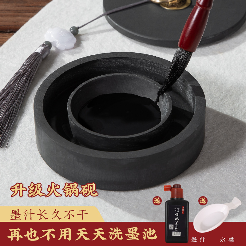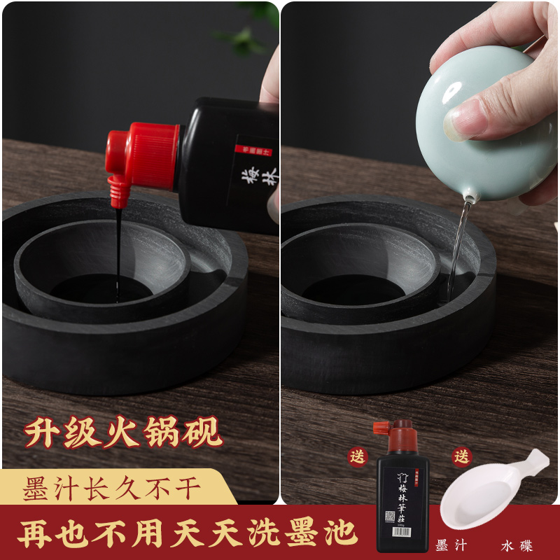 您的位置:他他商城  >   >  梅林笔庄火锅砚台升级款双圈保湿防蒸发不干墨砚台毛笔墨水书法带