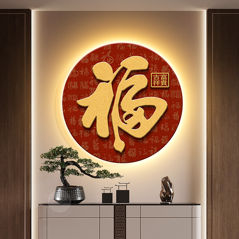 您的位置:他他商城  >   >  热销福字挂画入户门玄关装饰画圆形画新中式茶室挂画红色走廊过道