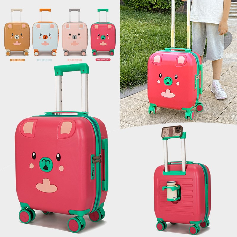 18寸儿童旅行密码登机带杯托万向轮大容量卡通拉杆礼品行李箱