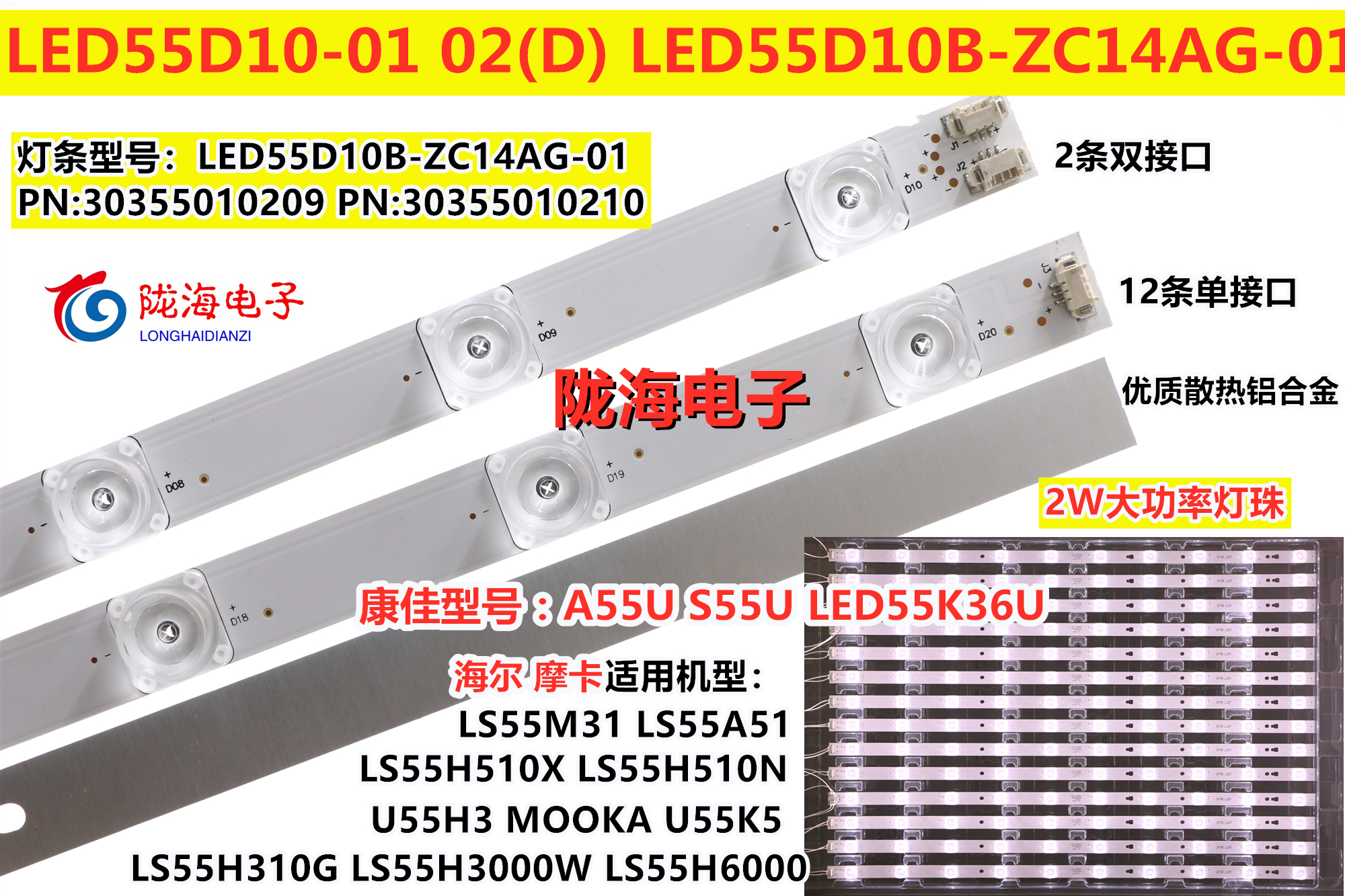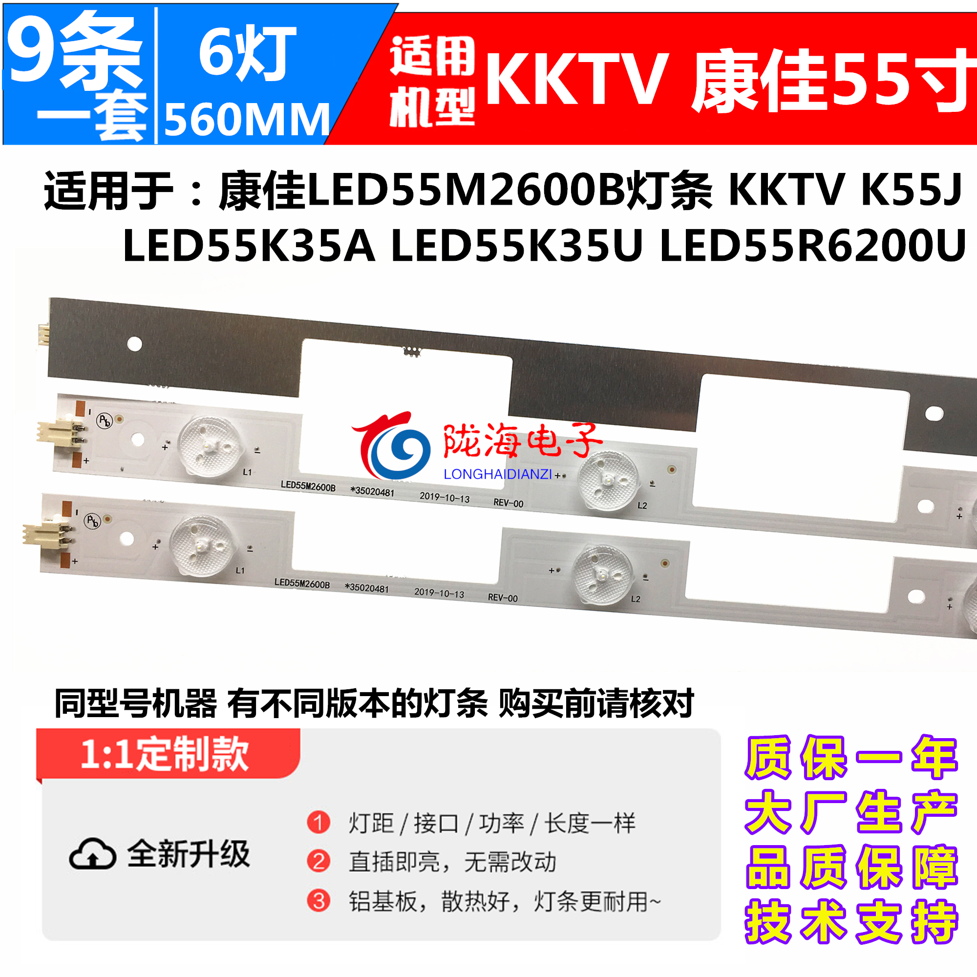 适用康佳A55U KKTV K55J1灯条LED55R6000U 35022157 5灯9条电视灯 - 陇海电子