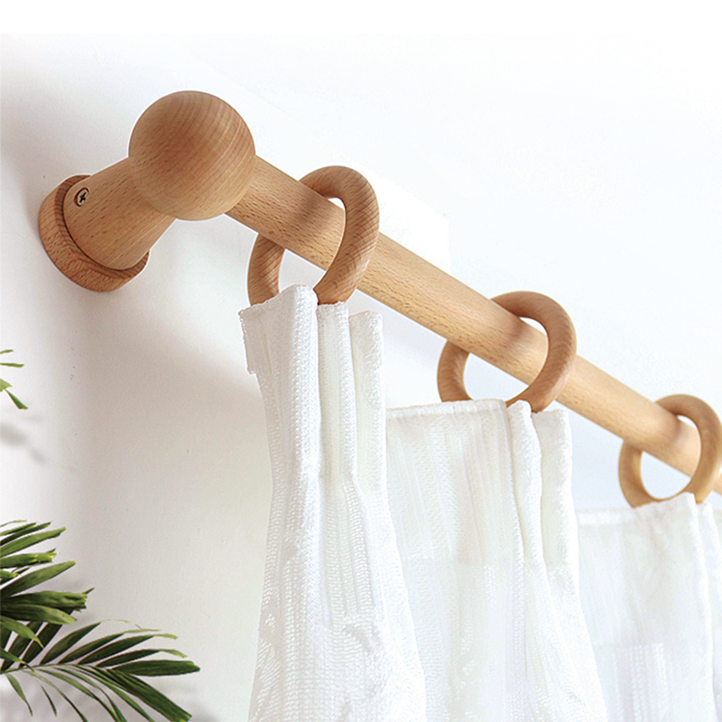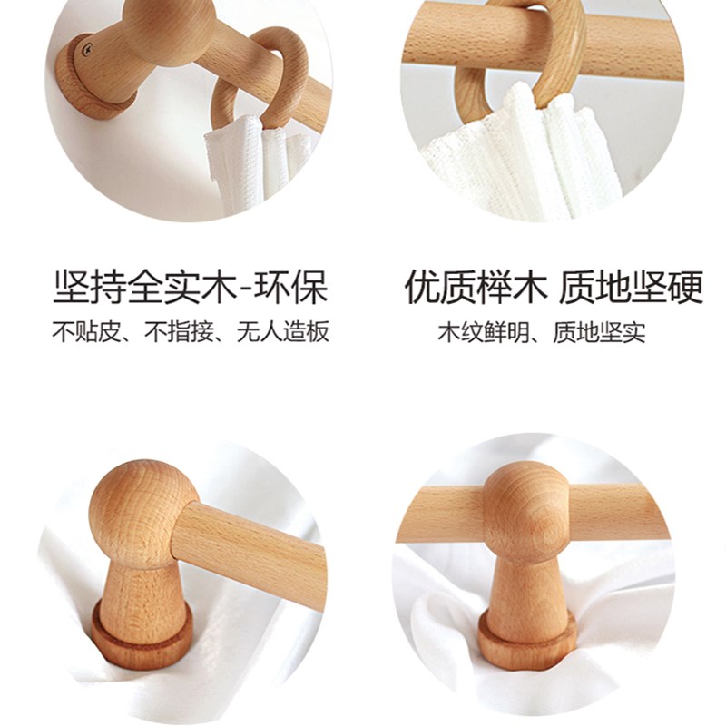 原木窗帘杆窗帘罗马杆简约支架z木质罗马圈艺术支架打孔侧装孔卧 - 星鹤工厂直销