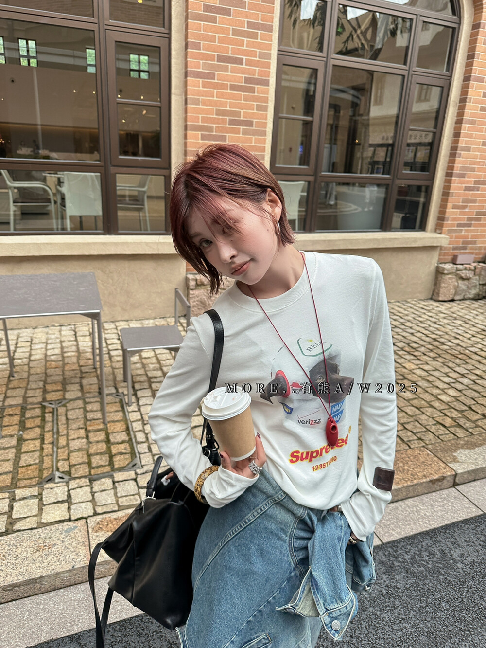 More有熊秋季新款韩版休闲百搭卡通狗印花长袖T恤正肩上衣女8650