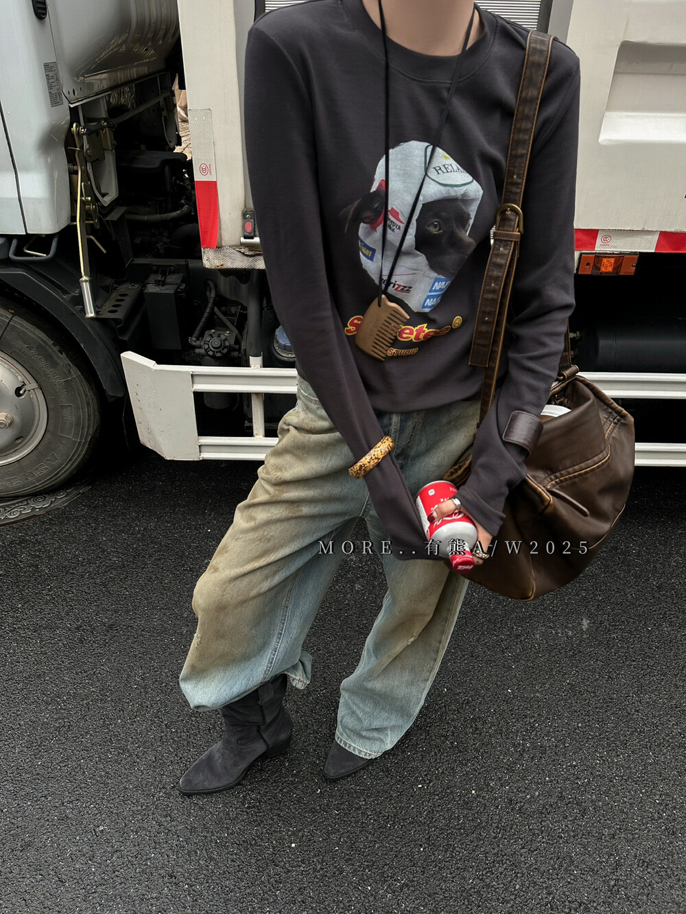 More有熊秋季新款韩版休闲百搭卡通狗印花长袖T恤正肩上衣女8650 - LE studios