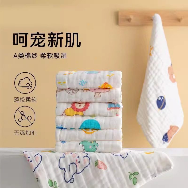 婴儿毛巾纯棉A类四层纱布高密超柔口水巾宝宝洗脸巾超吸水小方巾 - 亲语企业店