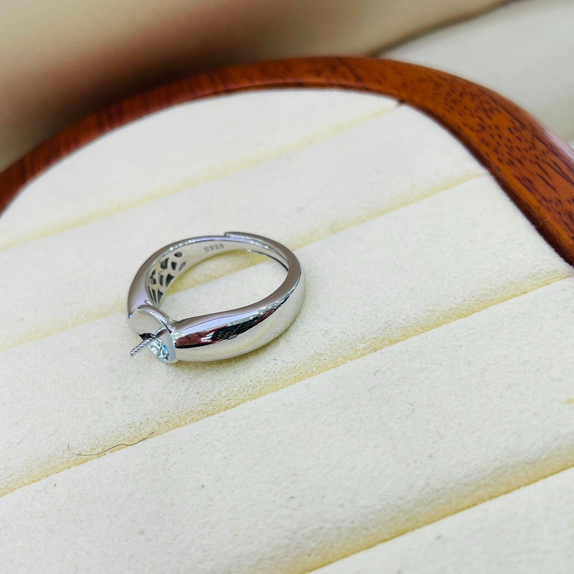 国内精工S925纯银素戒光版戒指空托配件可配11-14mm - 洛禾珍珠纯银精致配件