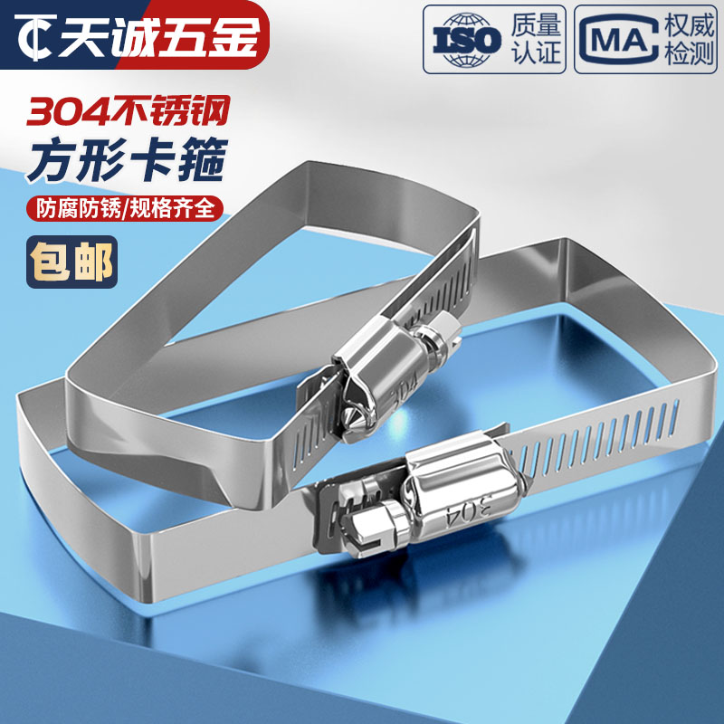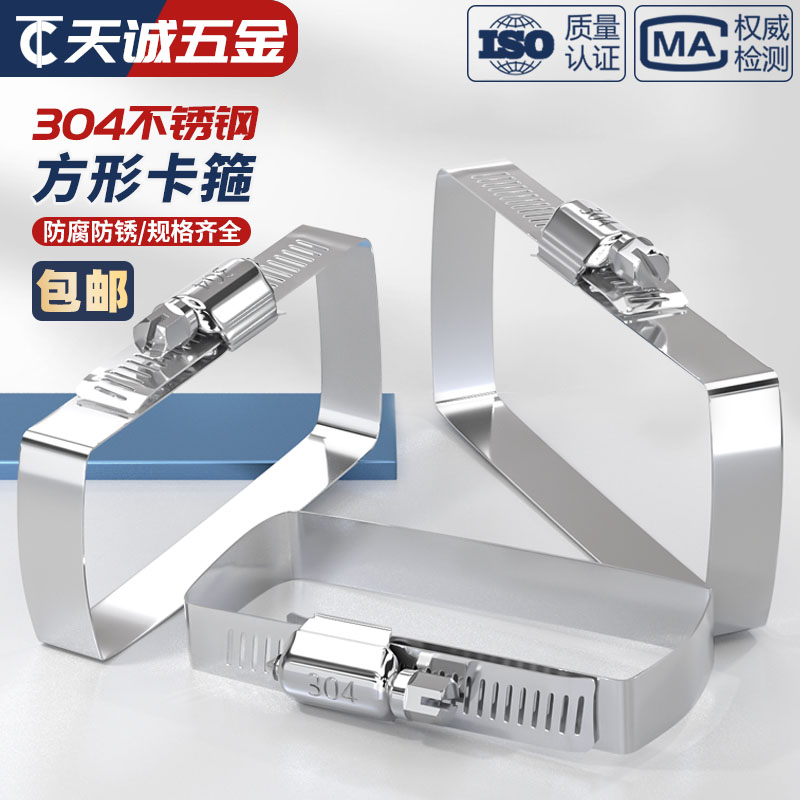 304不锈钢方形卡箍桥架抱箍光伏电缆喉箍线槽管夹箍方管固定卡扣 - 天诚五金TC