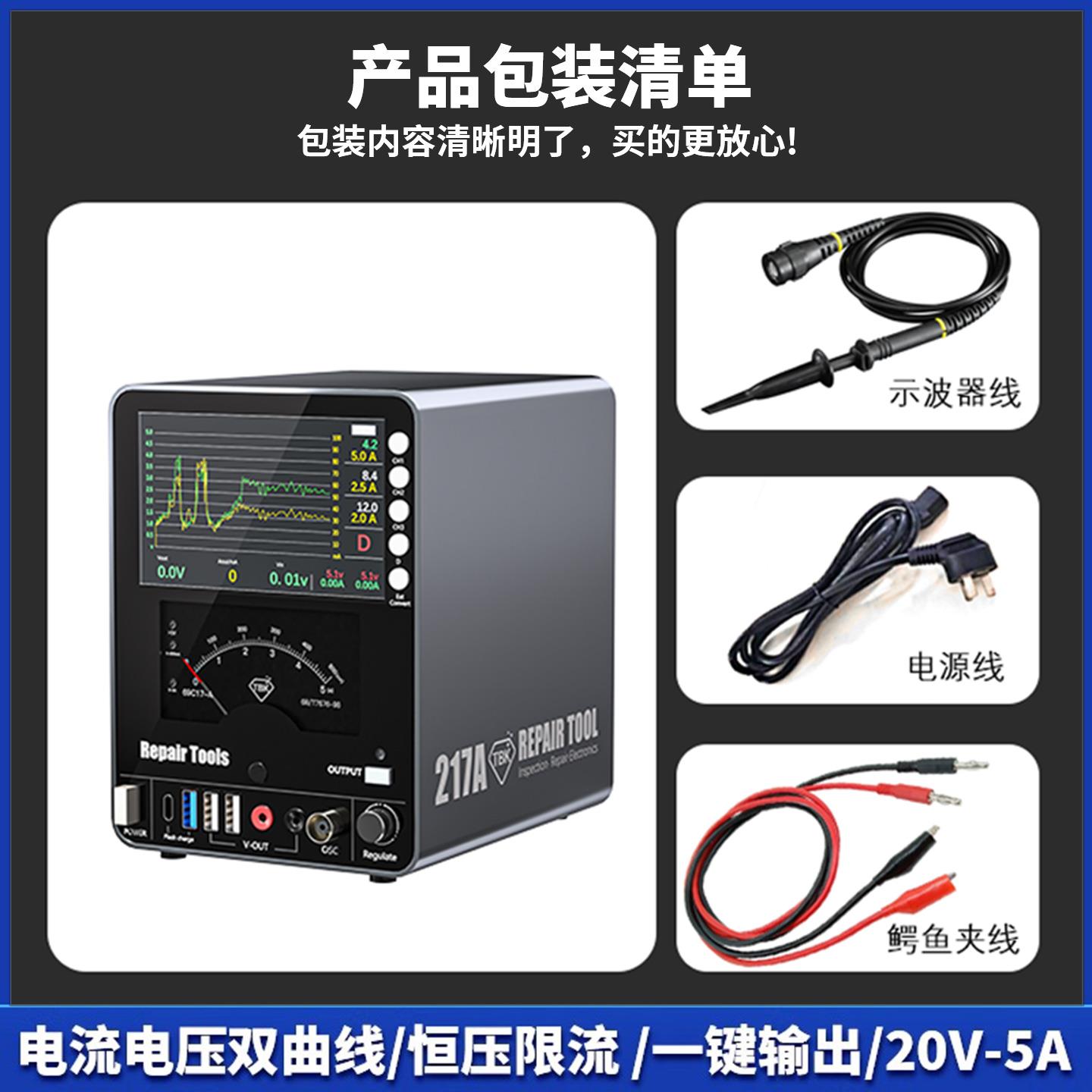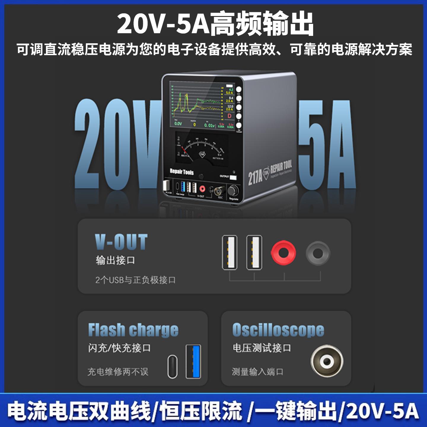 TBK217A曲线 线直流稳压电源20V5A手机电脑主板维修恒压限流充电 - 日瑞斋商城