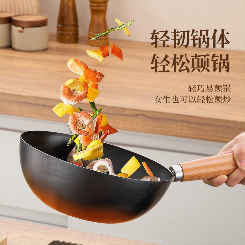 章丘正宗迷你小铁锅炒锅家用无涂平底不粘锅一人食宝宝辅食电磁层