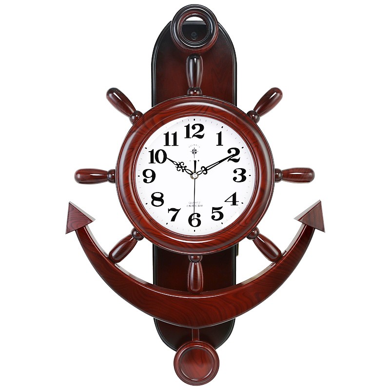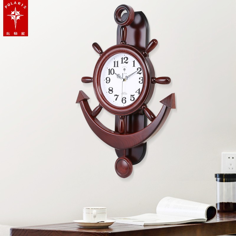 北极星舵手挂钟客厅地中海船舵静音个性时钟时尚田园石英钟仿木钟 - 北极星精品钟表商城