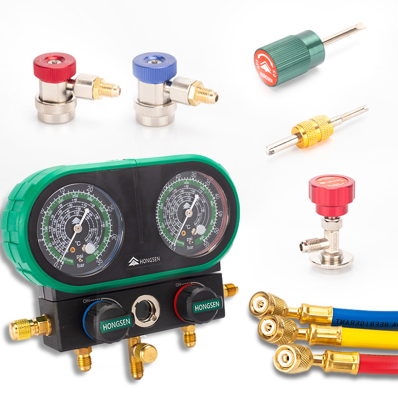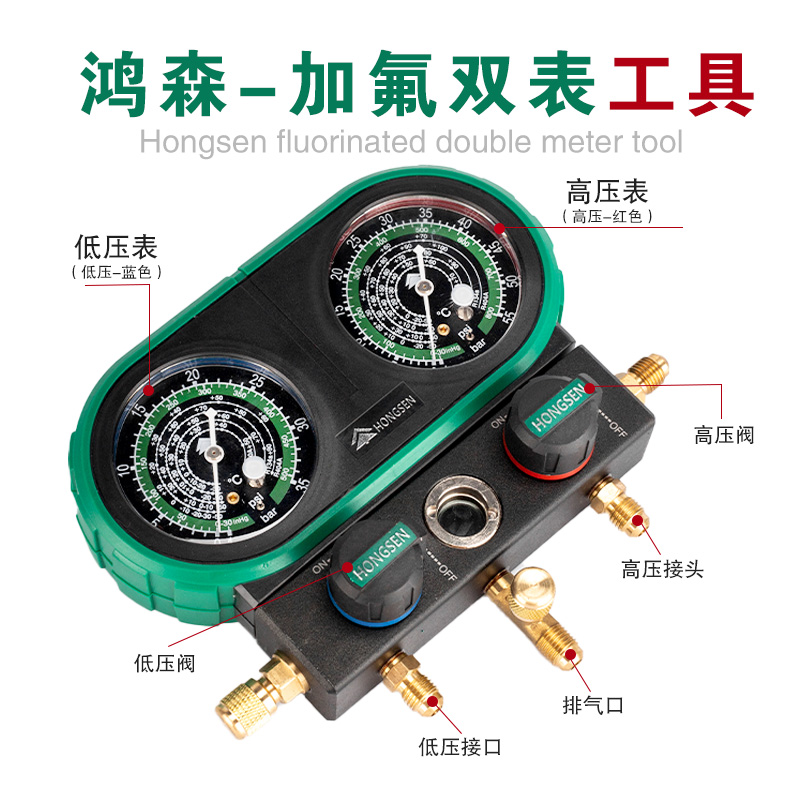鸿森家用汽车加氟表R134aR410R32冷媒加液双表汽车空调雪种压力表 - 能叔虹商贸