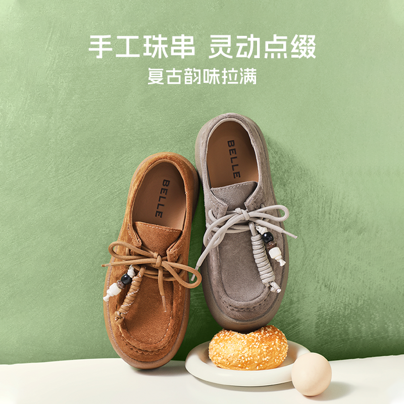 百丽复古流苏穿珠全包勃肯鞋女2025新款厚底休闲牛津单鞋B2856CM5 - 百丽官方奥莱旗舰店