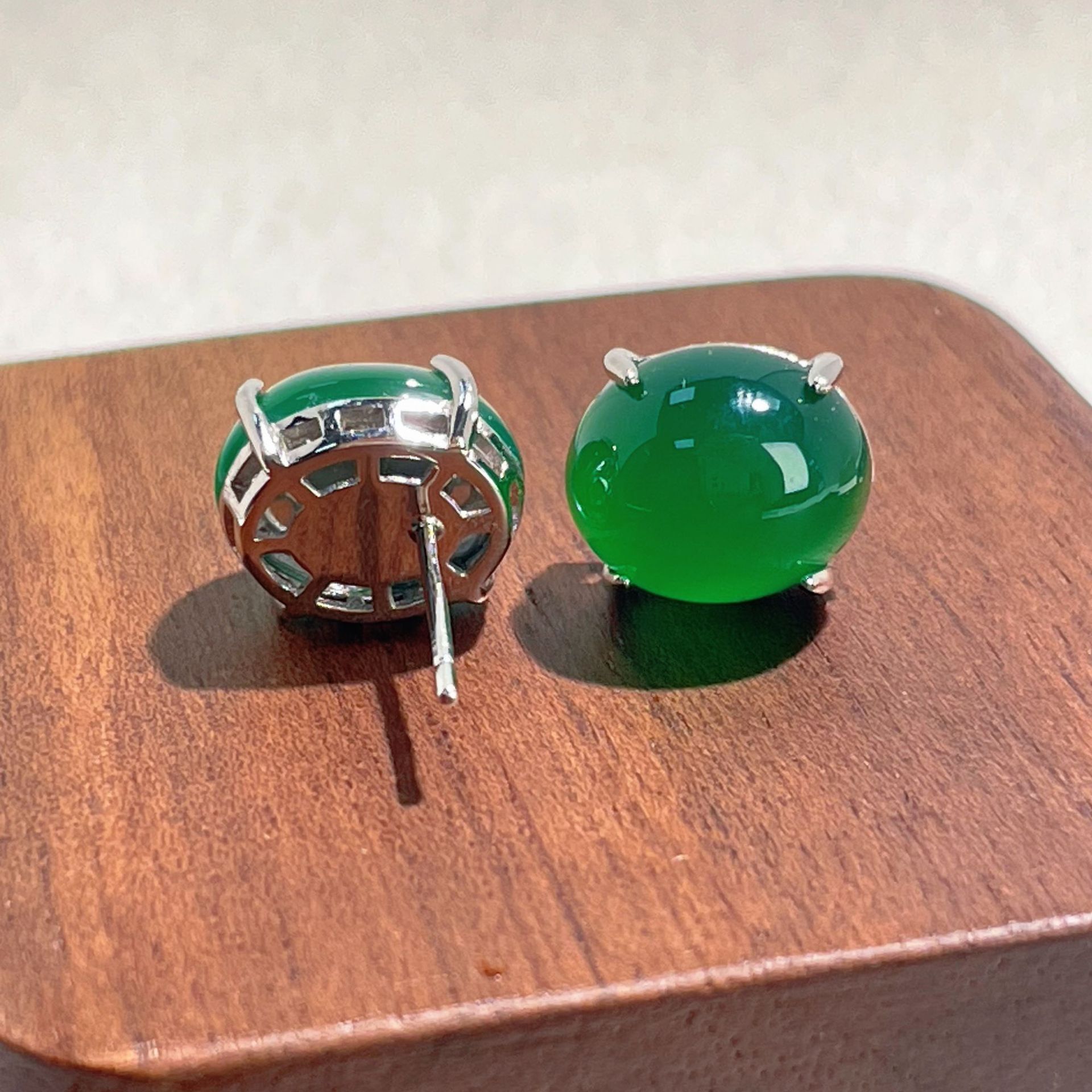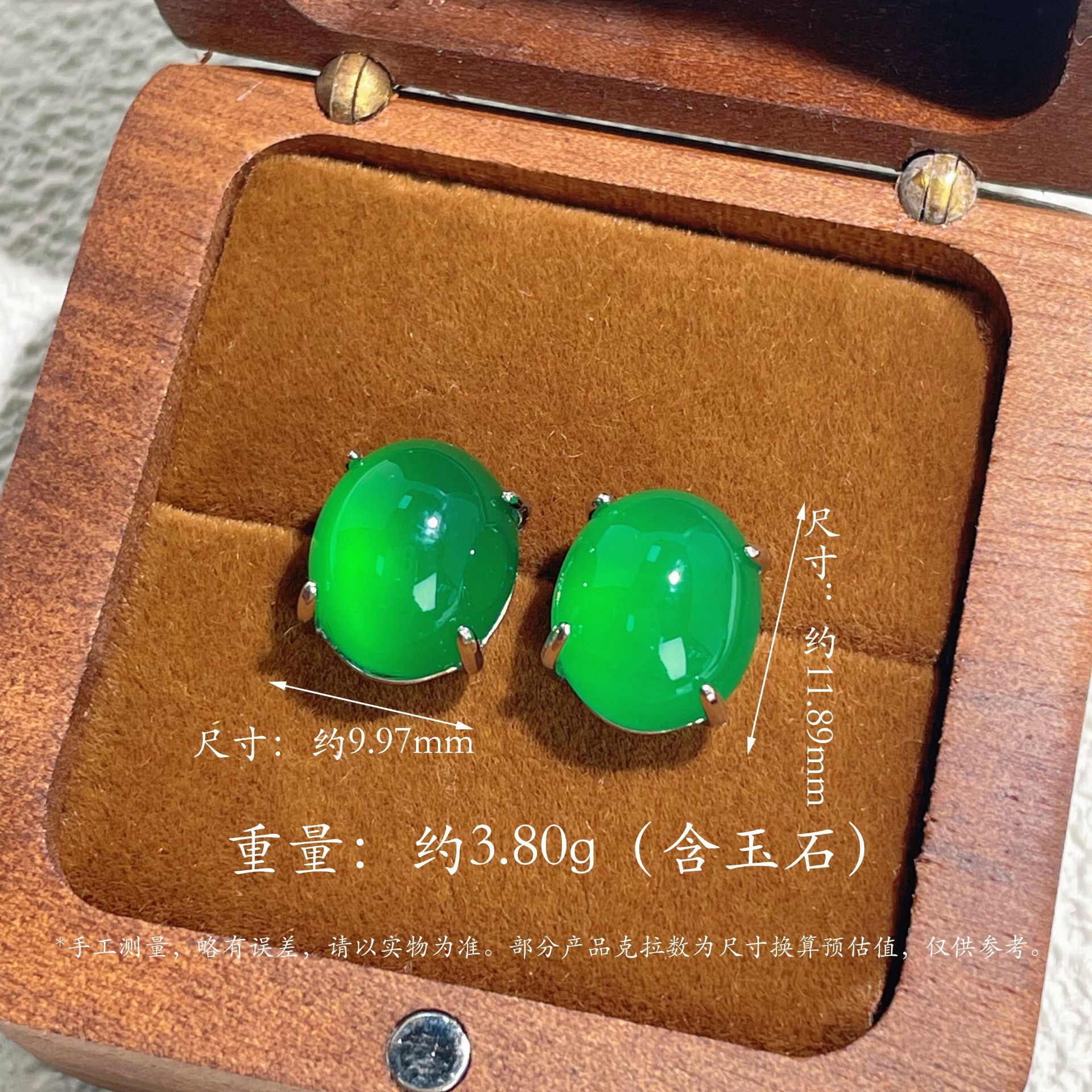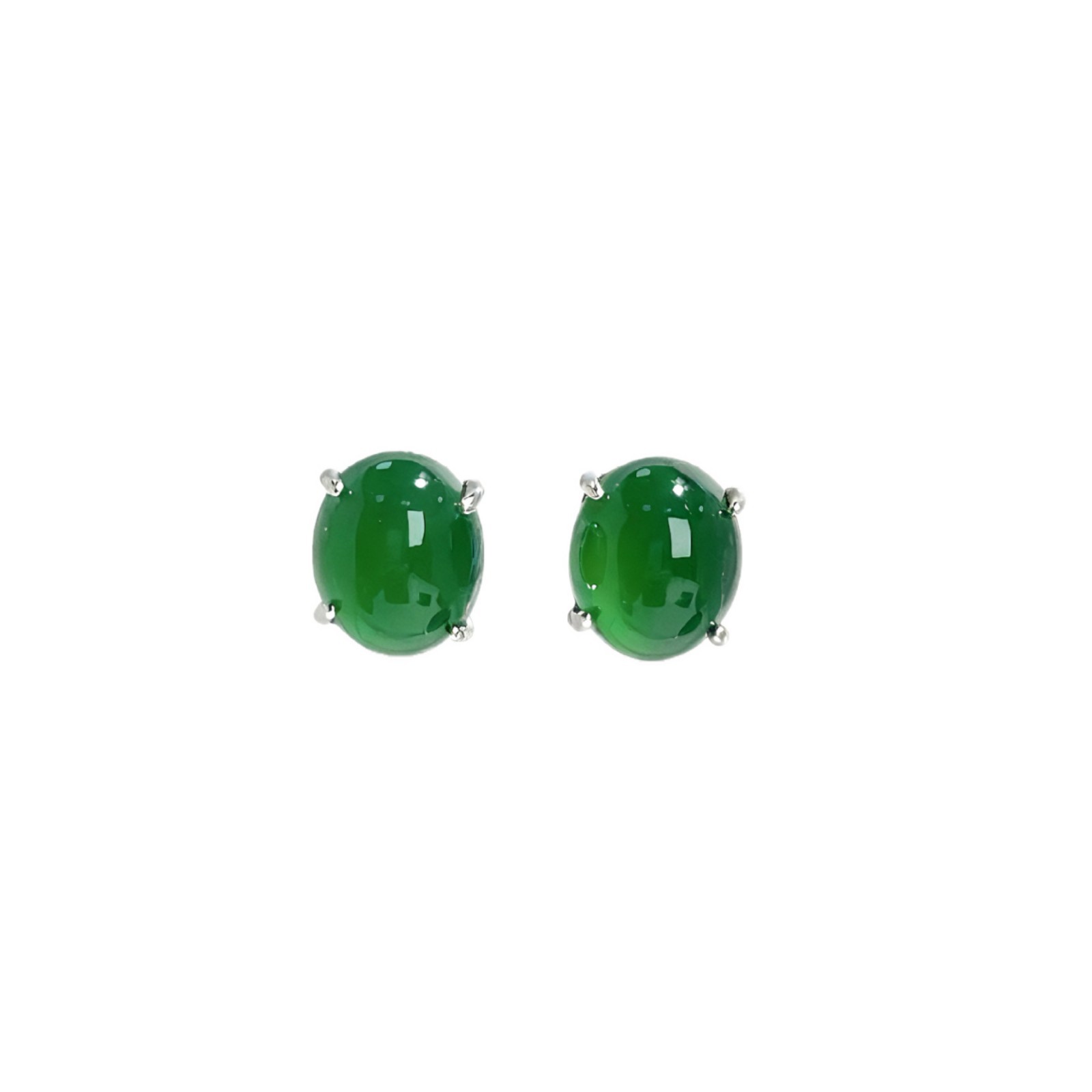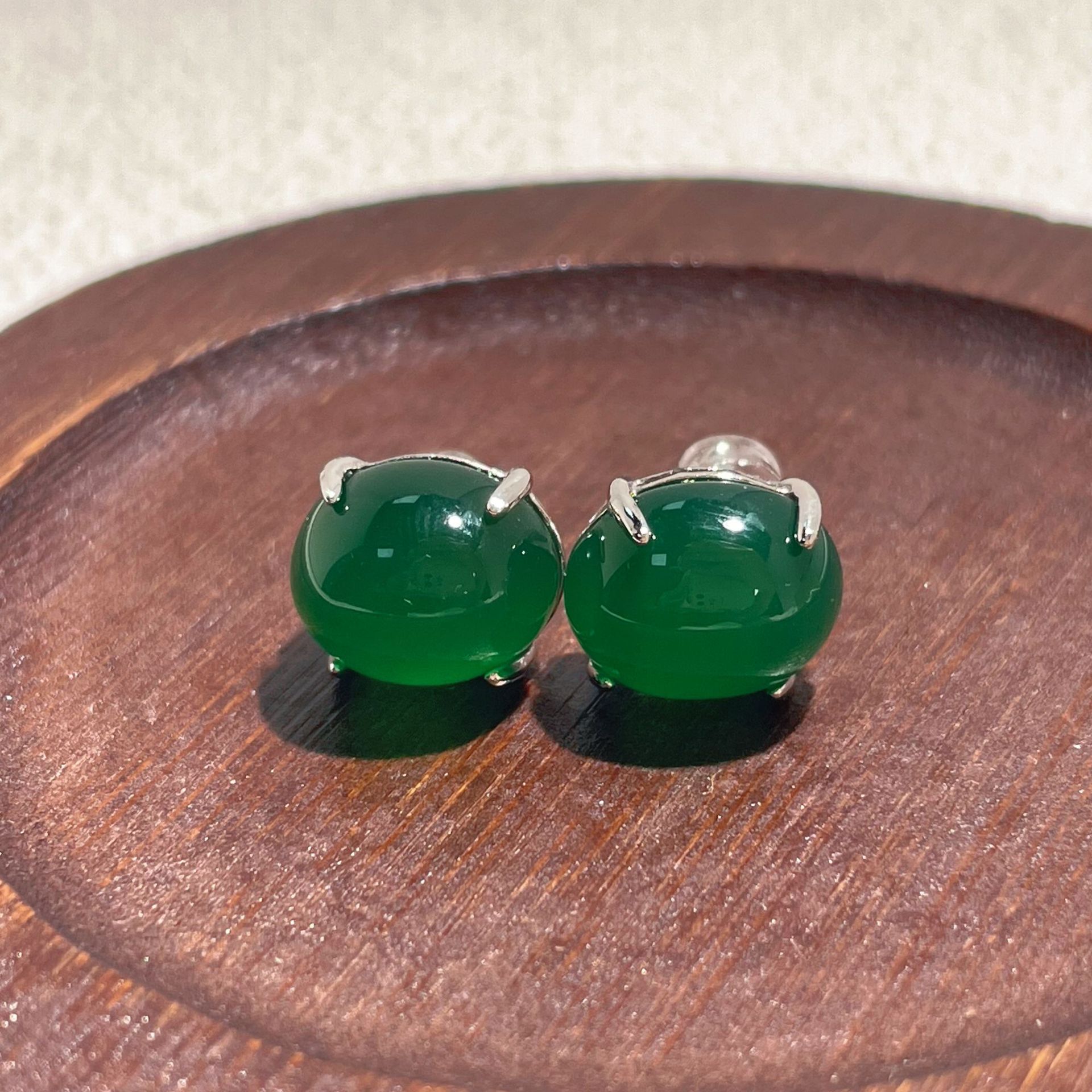 s925纯银新款新中式天然绿玉髓祖母绿鸽子蛋翡翠绿色耳钉轻奢耳饰 - 一生一世饰品店