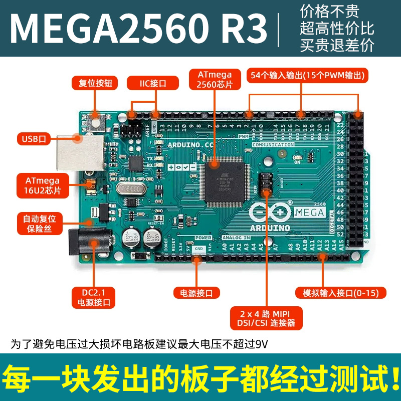 您的位置:他他商城  >   >  原装正品Arduino MEGA2560 R3开发板主板单片机控制器