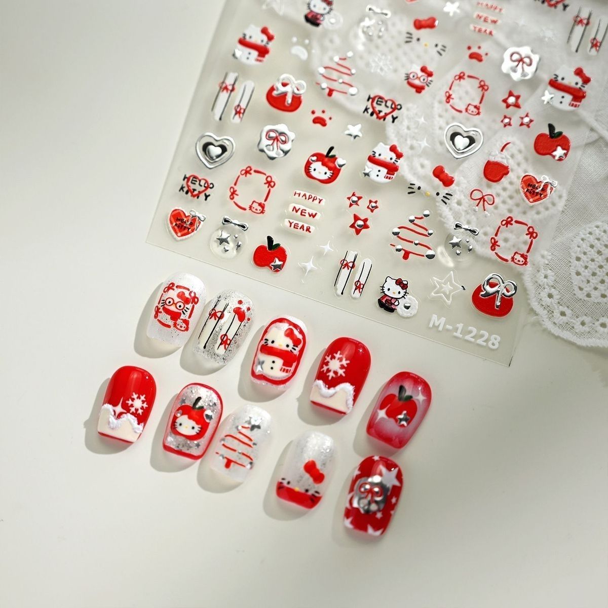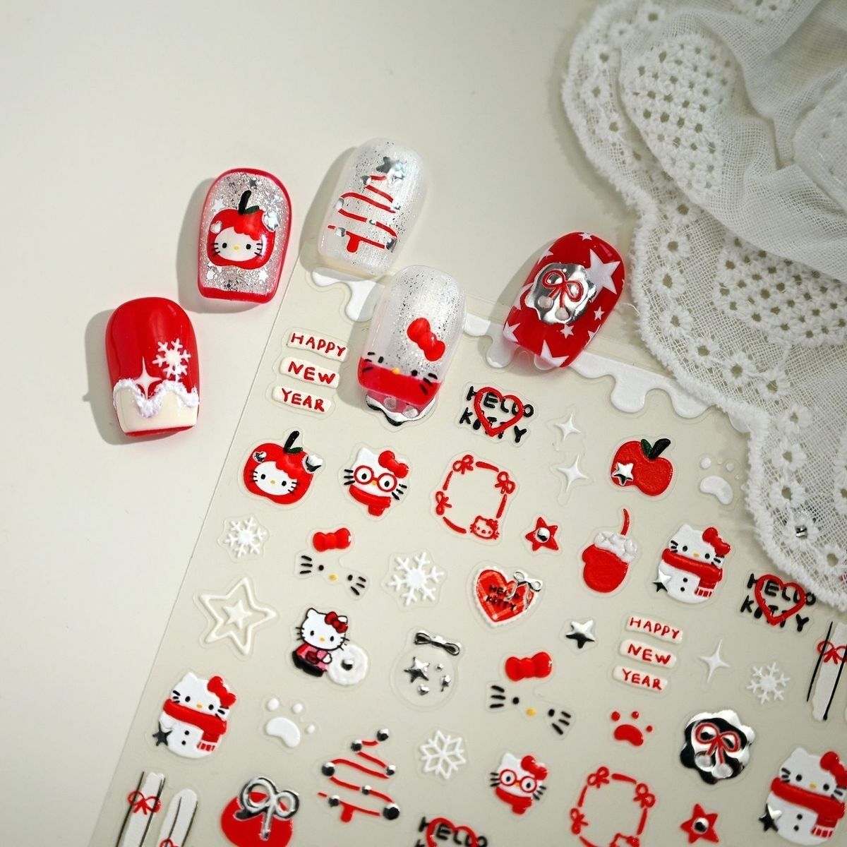 可爱圣诞新款KT猫爱心红苹果美甲贴纸定制kitty五角星百搭指甲贴 - 醒在山河Stickers