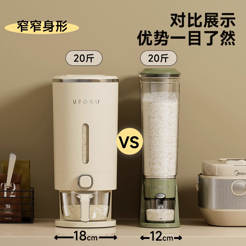 日本米桶家用防虫防潮食品级密封新款米缸装大米窄米箱厨房收纳盒 - 吱凡旗舰店