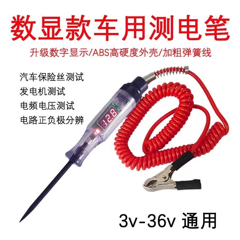 汽车测电笔LED数显高精度试电笔12V24V72V车用电路保险丝电子检测 - 汽车电子配件大全