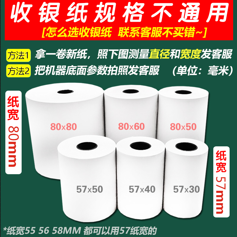 薄纸款热敏打印纸57x50收银纸80x80美团饿了么外卖小票纸80x60x50餐饮点菜宝厨房医院银行排队叫号耐用热敏纸 - 有田旗舰店
