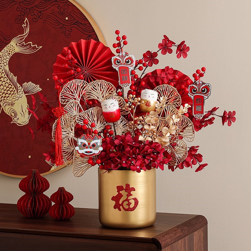 新年装饰品摆件年宵花抱抱桶2025春节家用喜庆场景U布置发财果福 - 安瑞设计馆01