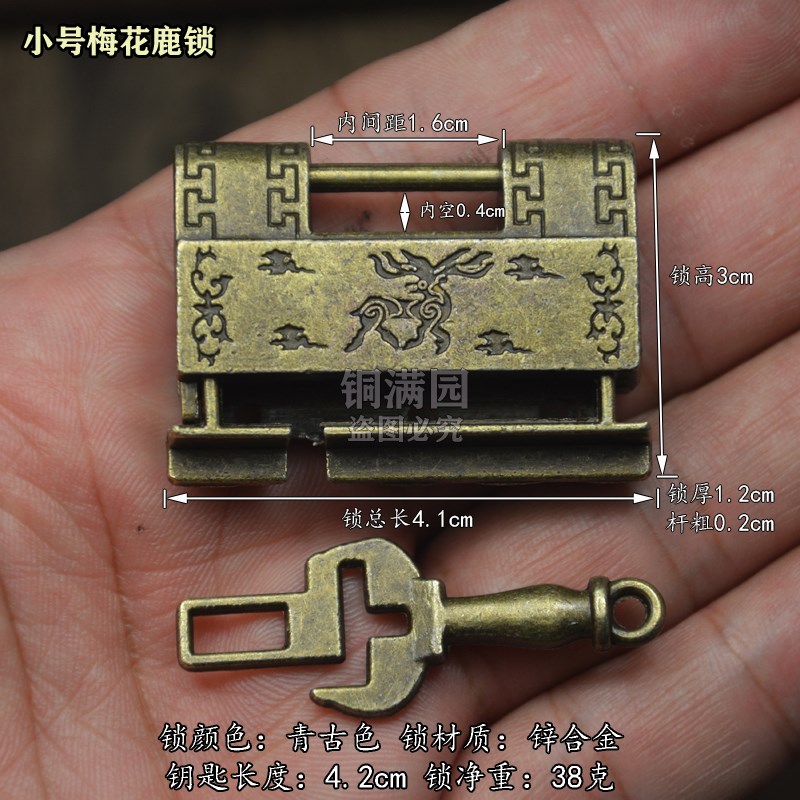 仿古做旧梅花鹿挂锁复古迷你袖珍机关锁合金古锁老式X木盒小锁钥 - tb30466391321