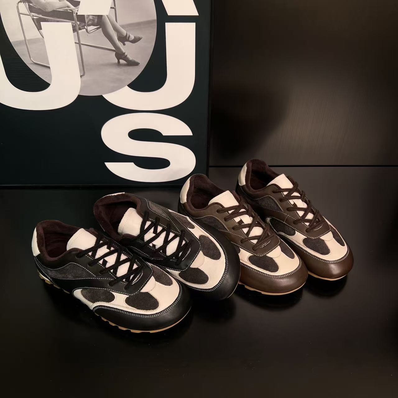 您的位置:他他商城  >   >  复古德训鞋女厚底拼色休闲系带百搭2025秋冬新款真皮加绒运动板鞋