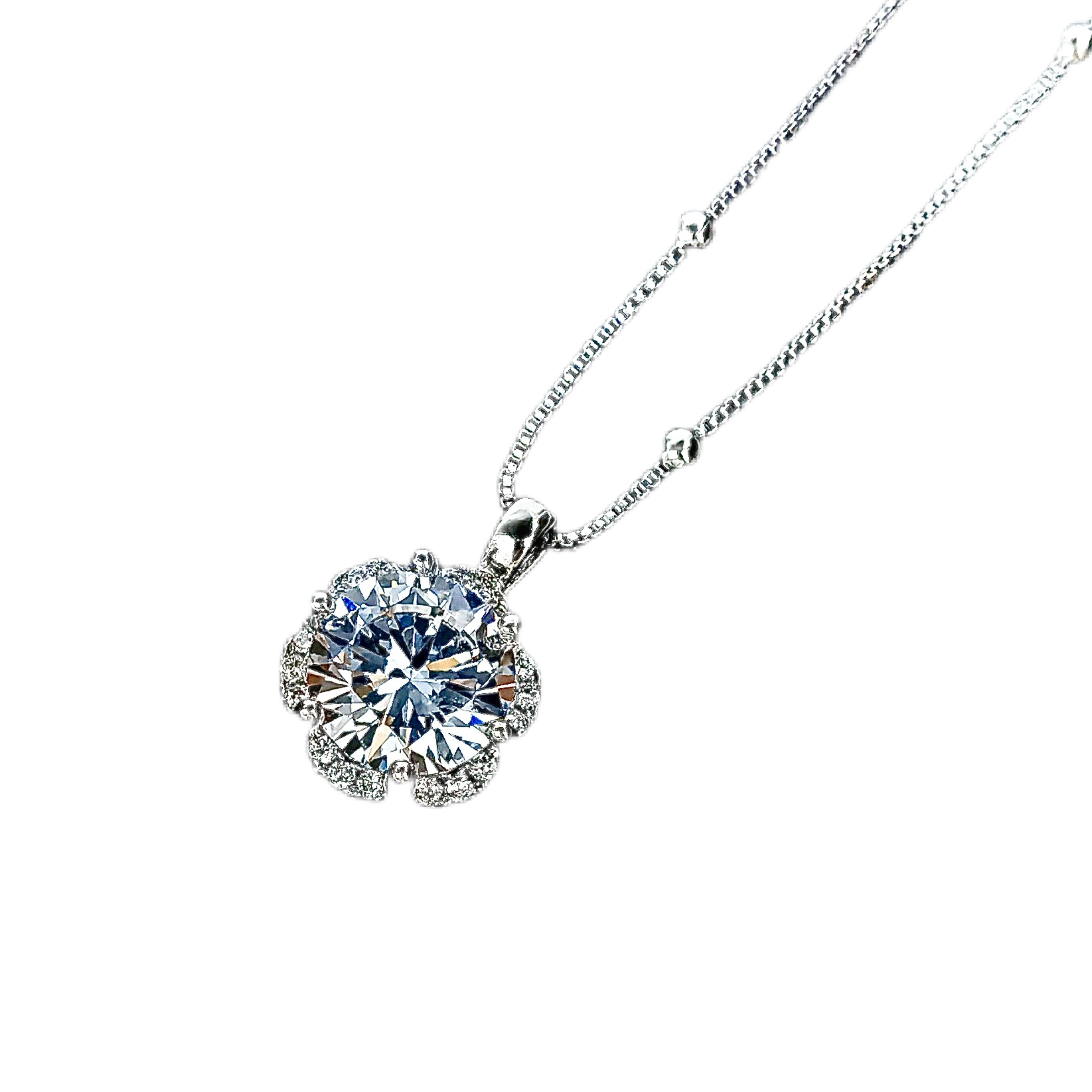 S925纯银镶钻花蕊项链女轻奢时尚闪耀锆石吊坠高级感锁骨链送女友 - 心上 原创设计饰品