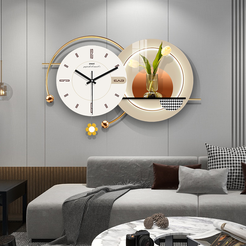 您的位置:他他商城  >   >  创意轻奢钟表挂钟客厅现代简约大气家用时尚餐厅挂墙装饰时钟壁灯