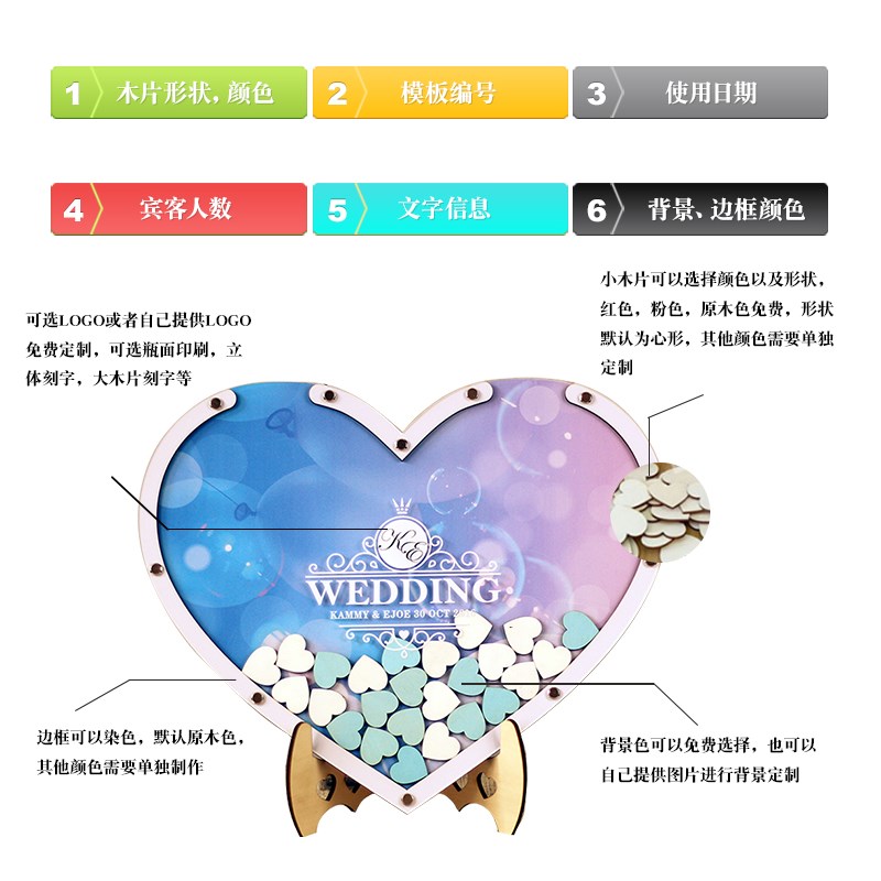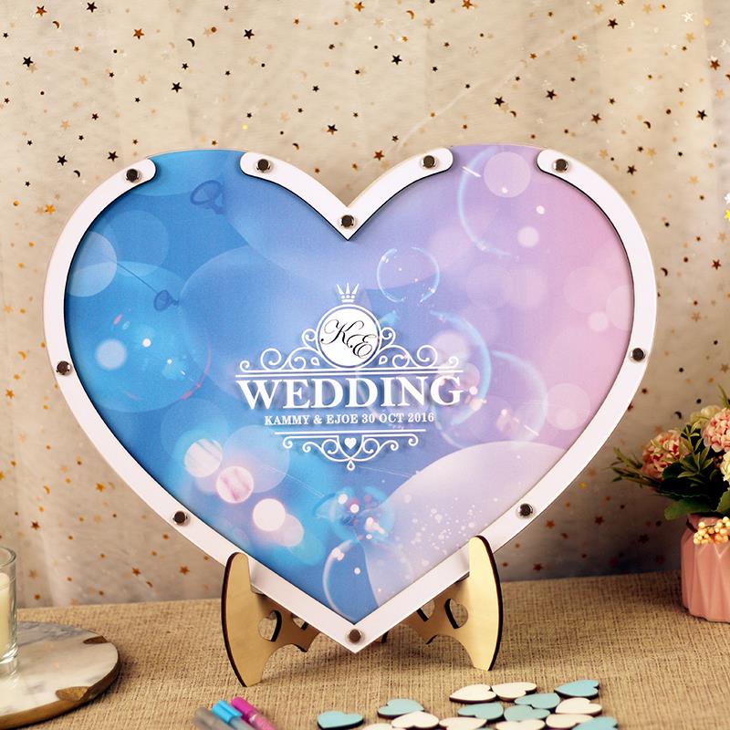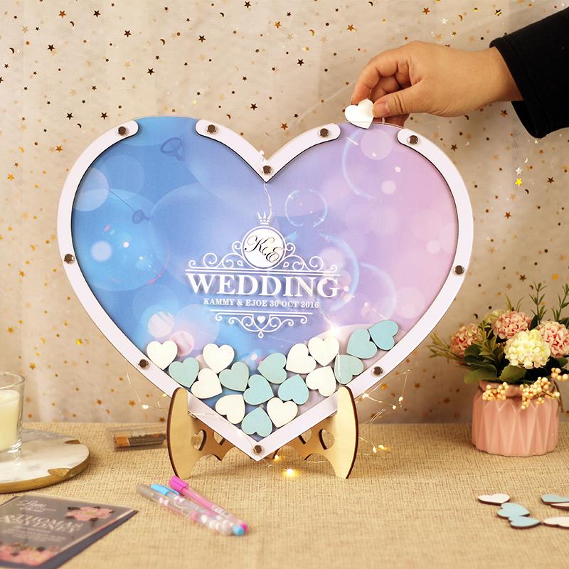 结婚礼婚庆爱心木片签到框实木相框签名册创意个性签名板册墙本簿 - 天河甜品馆