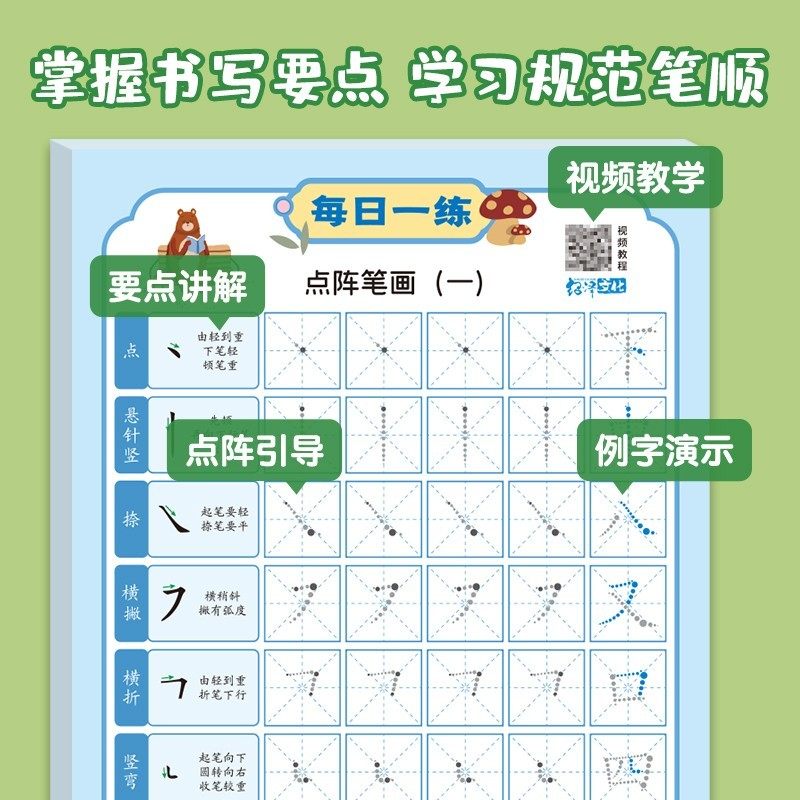 每日一练减压字帖点阵练习笔画练字启蒙初学者偏旁练习本耐磨耐擦 - 瑞辛家居