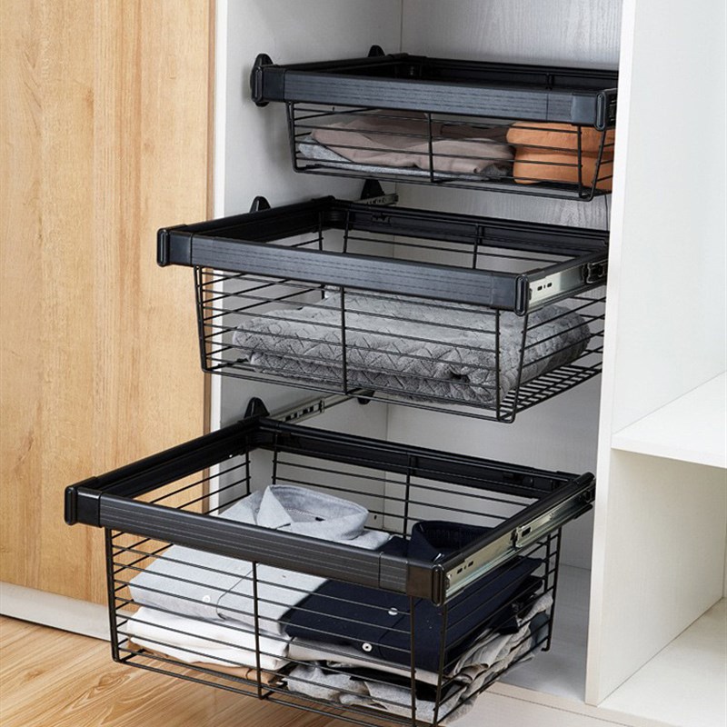 衣帽间衣柜拉篮无衣架抽拉伸缩收纳置物篮裤架衣柜抽屉拉篮五金配 - 富腾严选店