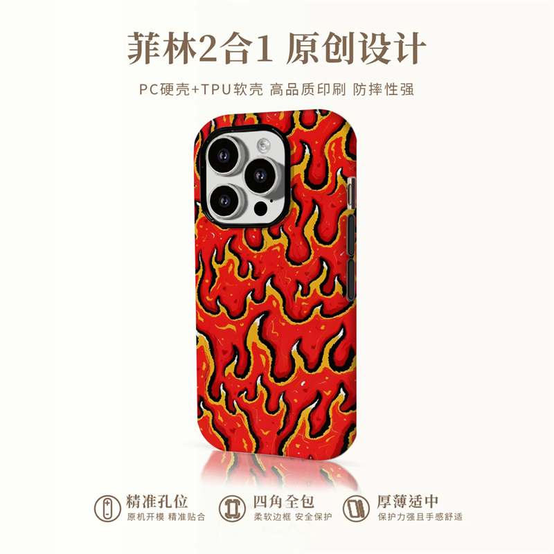 像素火焰适用iPhone16promax手机壳设计感小众2025新款15磨砂菲林13不撞款12艺术11苹果14plus华为p70pro小米