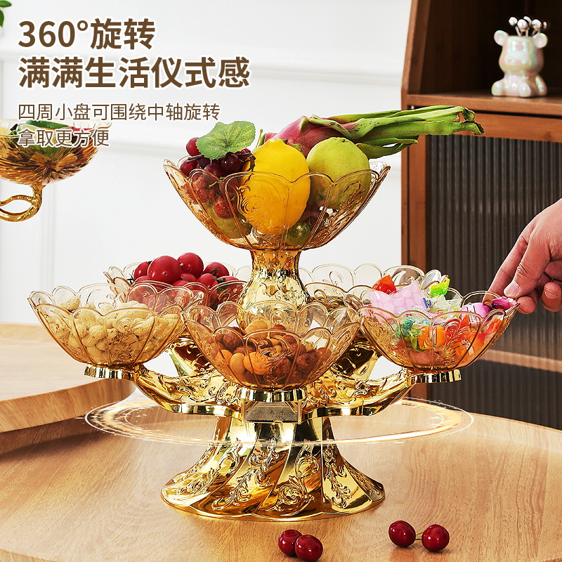 2025新款干果水果盘家用客厅茶几糖果欧式水晶多层果盘高档轻奢风 - 锦绣世贸