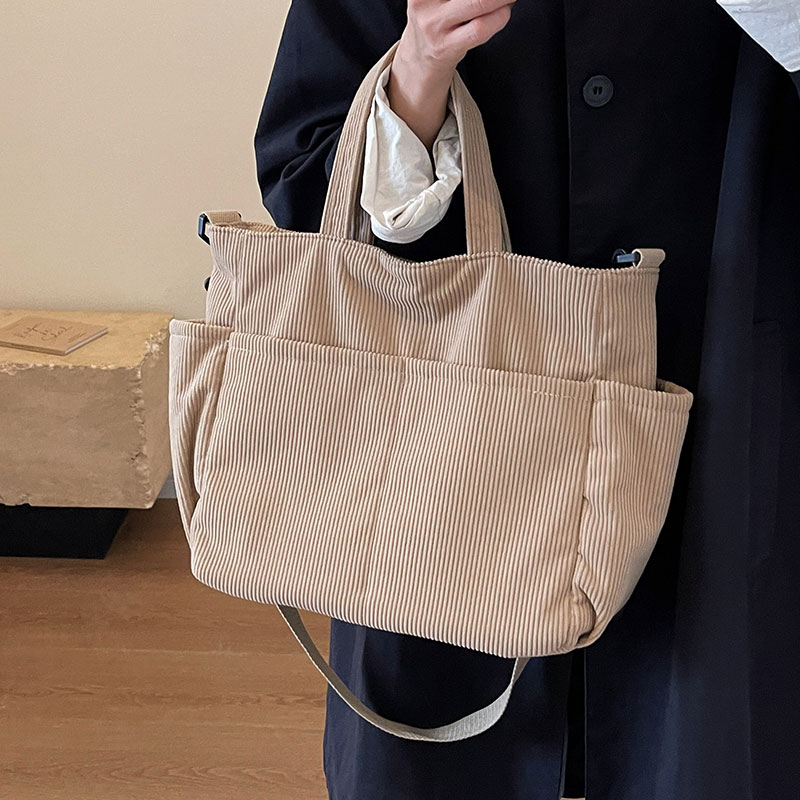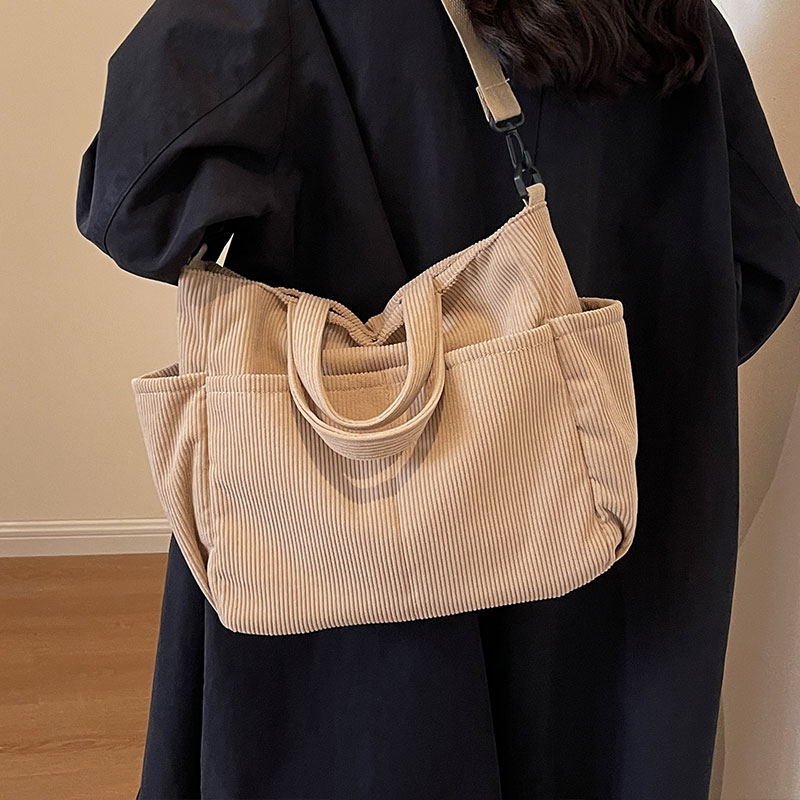 灯芯绒包包女大容量2025新款手提通勤包学生上课单肩包斜挎托特包 - MiaoMiao私人定制女包
