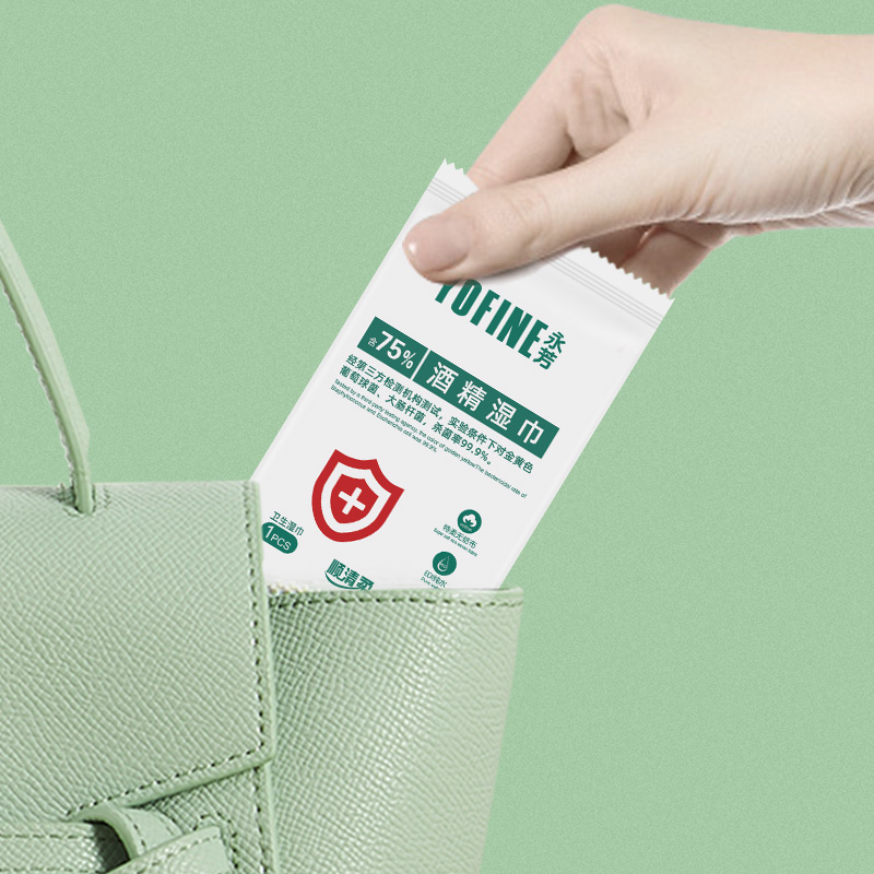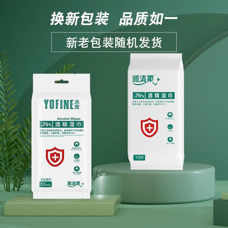 顺清柔75度酒精湿巾整箱10包共100片独立装上班学用杀菌消毒湿巾