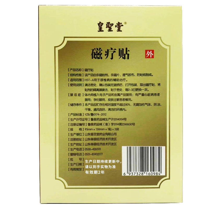 皇圣堂颈贴椎肩周炎疼痛磁疗贴脖子僵硬痛痛头晕贴颈椎酸麻痛HST
