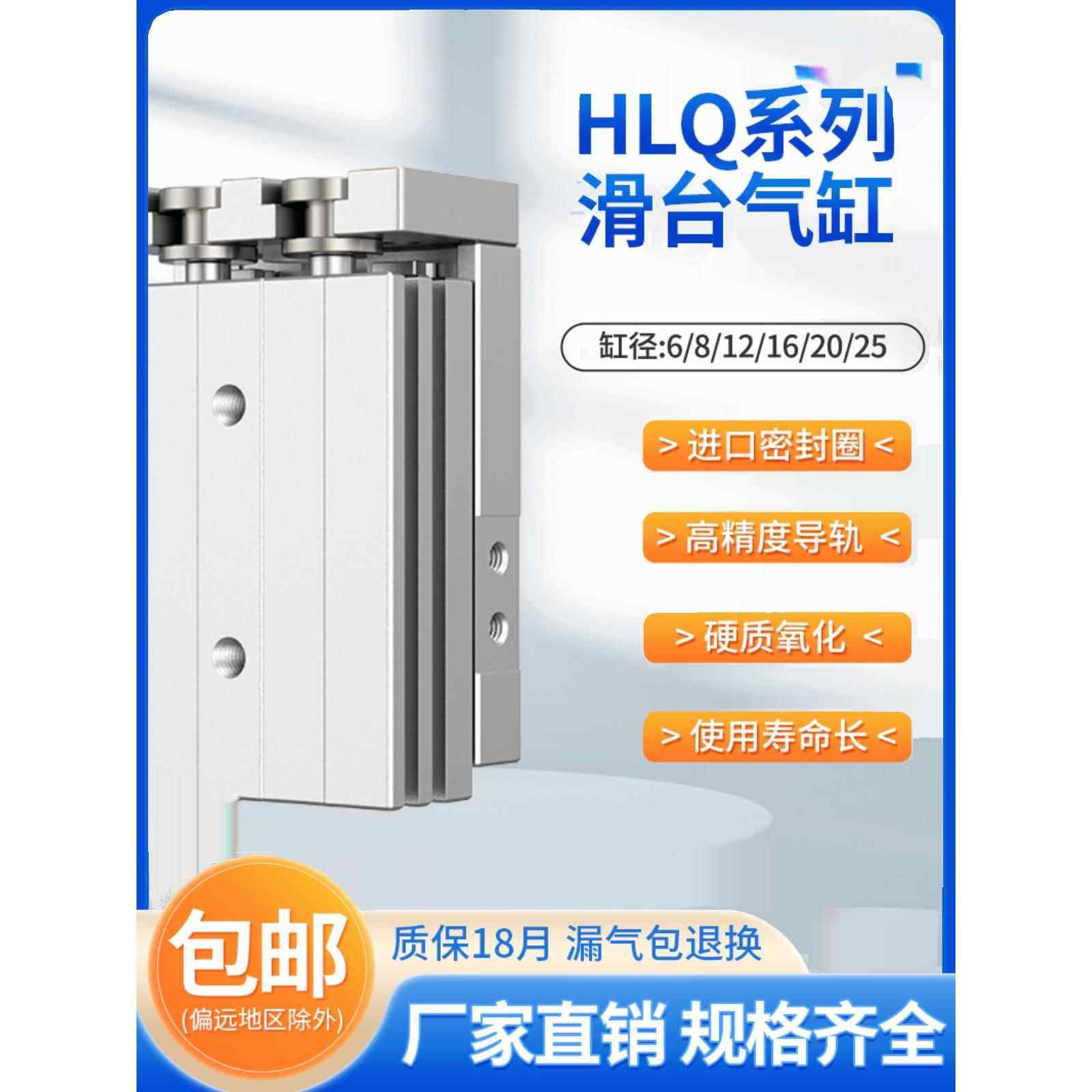 亚德客型气动滑台直线导轨气缸HLQ8 12 16 20 25 /10 50 100 150 - 侏伎旗舰店