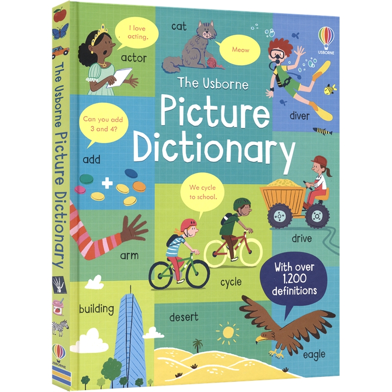 英文原版 Usborne Picture Dictionary 儿童英语图解词典 单词1200+ 基础英语语法 数字星期颜色常用词 进口原版