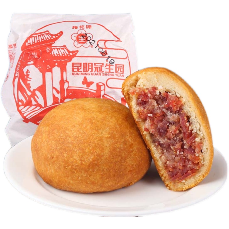 昆明冠生园云腿月饼100g梅花牌宣威火腿月饼纸包老式火腿酥饼零食 - 财冉食品专营店