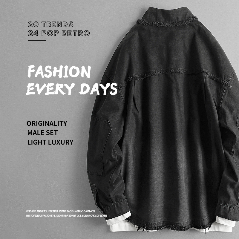 您的位置:他他商城  >   >  潮流痞帅破坏流苏黑色牛仔衬衫外套ins小众潮牌设计感宽松衬衣男
